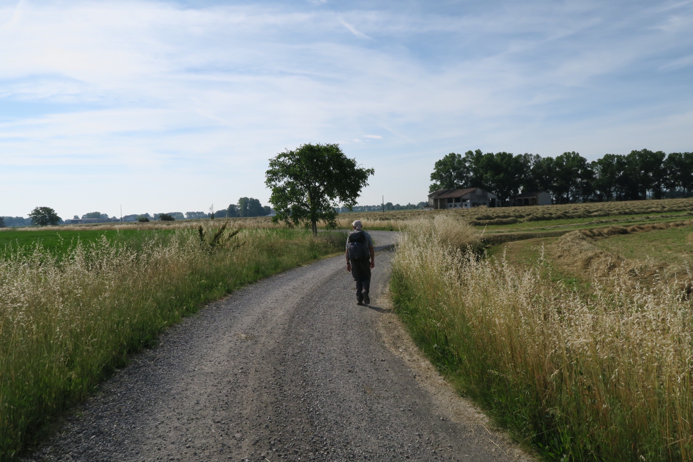 Dopo aver fatto per prima cosa tappa al bar di fronte al duomo ci avviamo; visto che mi ero promesso di andare piano decido di continuare il cammino con Freddie, lui per fortuna si fa capire bene in italiano perché io di francese so dire solo le marche delle loro auto. Ci raccontiamo un po’ delle nostre vite e di cosa abbiamo momentaneamente lasciato a casa, lui era un maestro che seguiva bambini disabili ora però non ho capito se è disoccupato o in pensione. Quello che ho sicuramente capito visto che me lo ha ricordato più volte è che lui deve assolutamente arrivare a Roma per poi tornare in Francia entro il 28 giugno per il matrimonio di sua figlia.