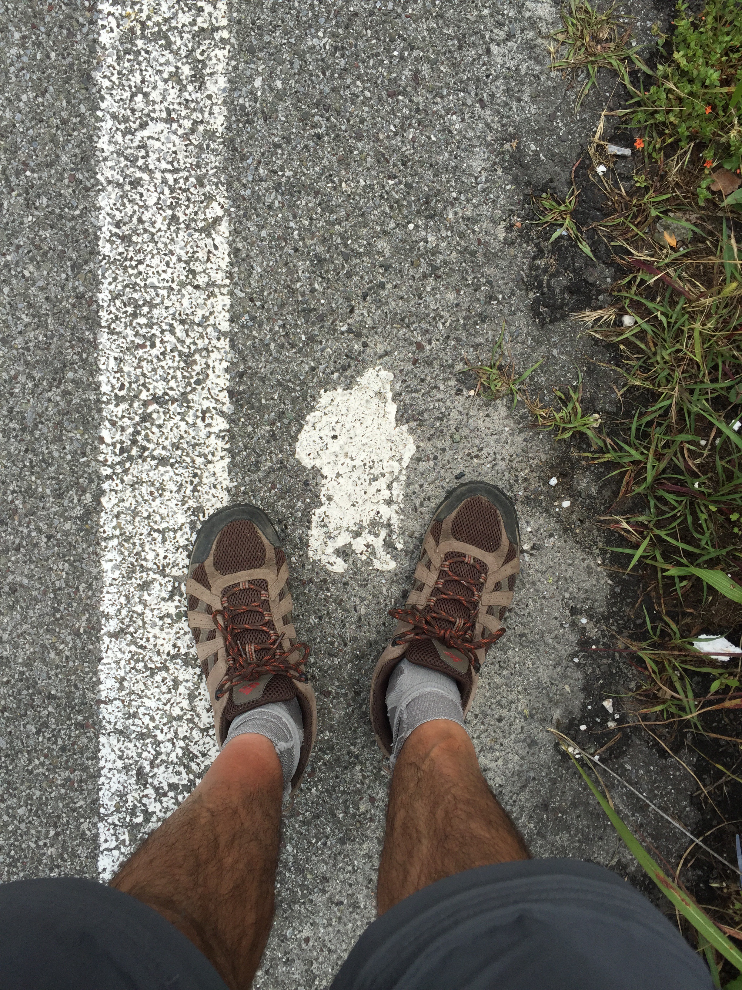L’ultimo tratto di strada lo faccio sul percorso difatti a lato, sull’asfalto trovo anche disegnati dei pellegrini.
