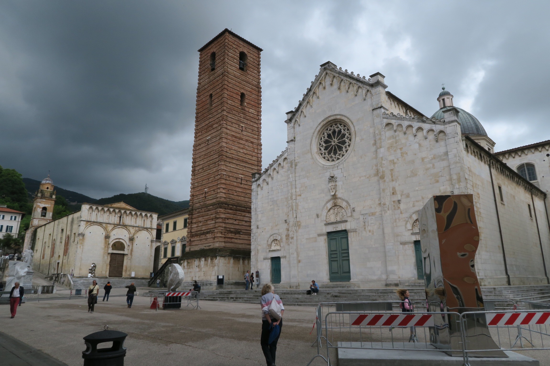 Va beh, insomma pessima idea quella del mare quindi mi sposto sulla ciclabile dall’altro lato della strada che segue tutta la costa, fino a quando trovo una deviazione che mi porta più nell’entroterra ed in fine dopo 24 km trascorsi, a Pietrasanta. Tanto valeva fare la Francigena.