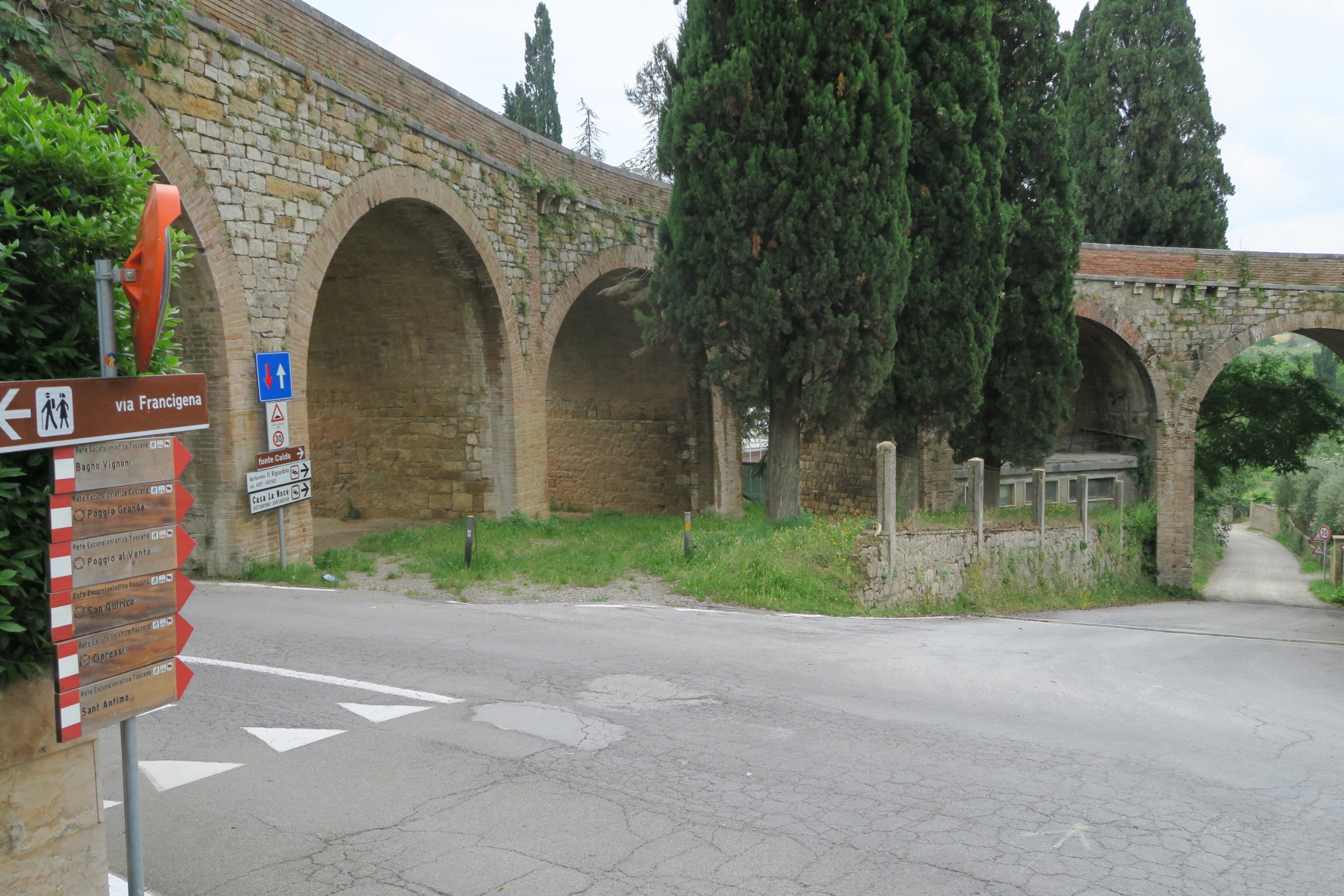 Con una deviazione sullo sterrato passo sotto al viadotto della statale e poi salgo su di un piccolo e ripido sentiero che porta, dopo un altro paio di km, a San Quirico.