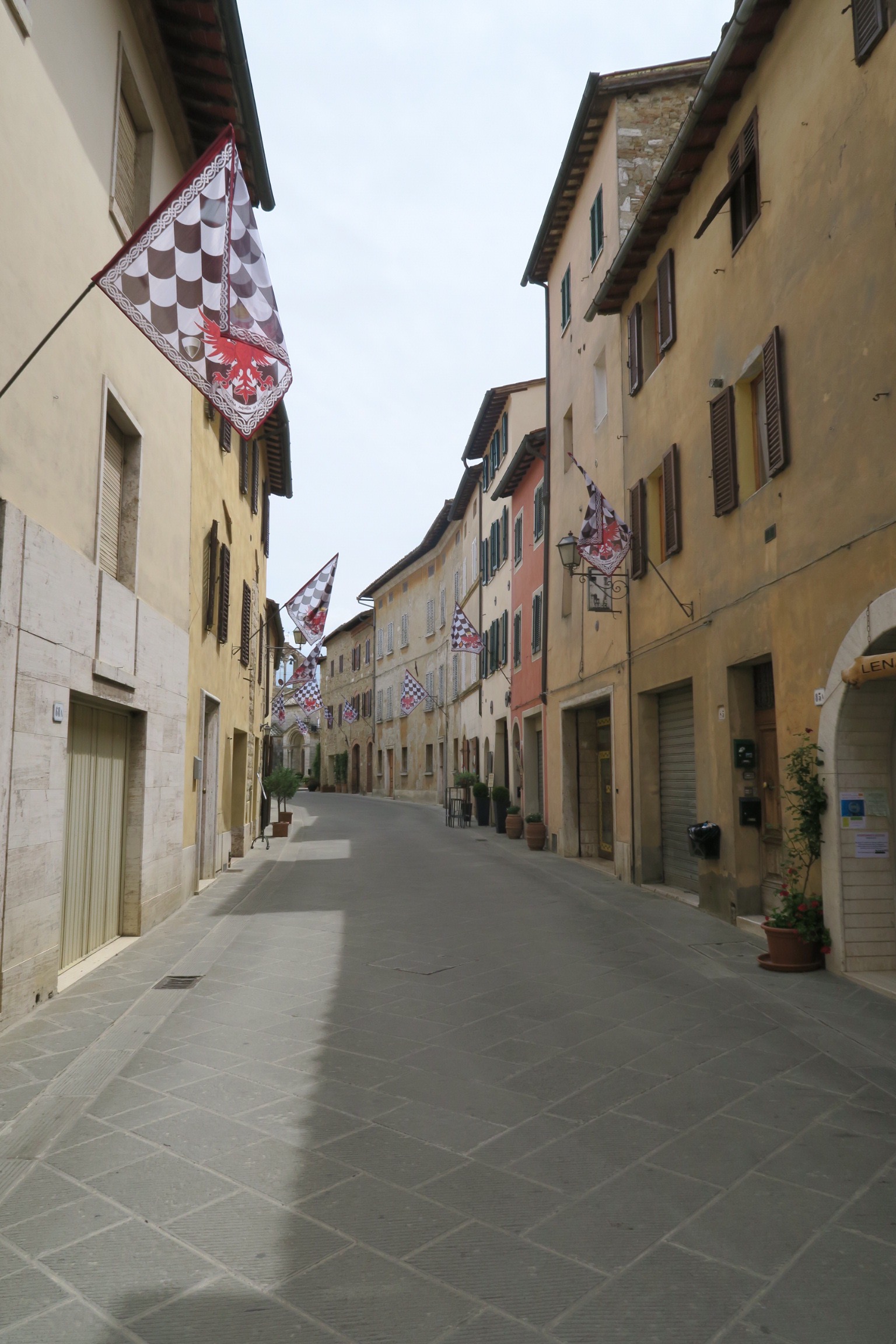 Quando, dopo una decina di km almeno, la strada torna a scendere si attraversa Torrenieri, posto perfetto per approfittare di un alimentari e prendermi un panino e una birra. Ormai è mezzogiorno ed alla fine mancano 8 km.