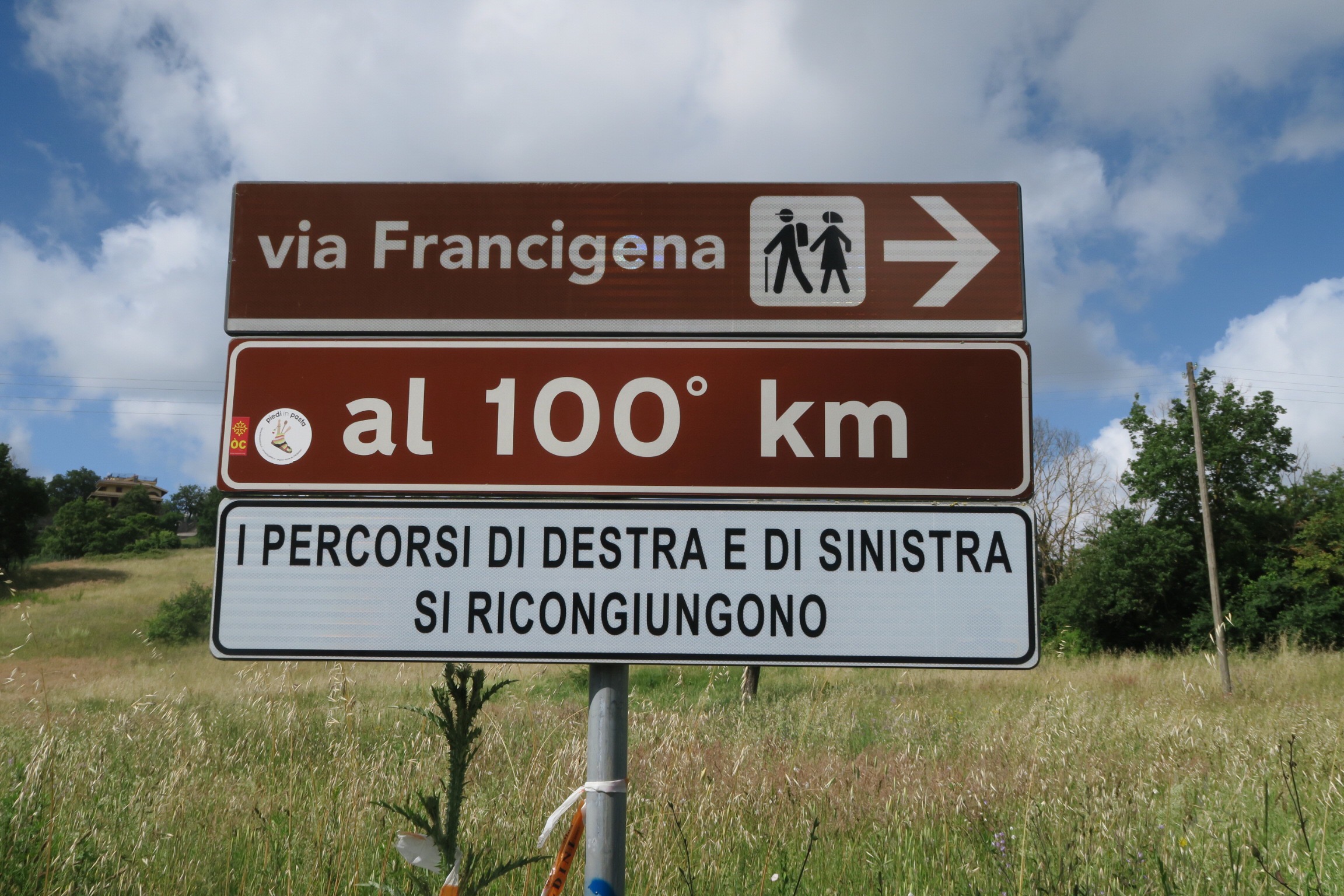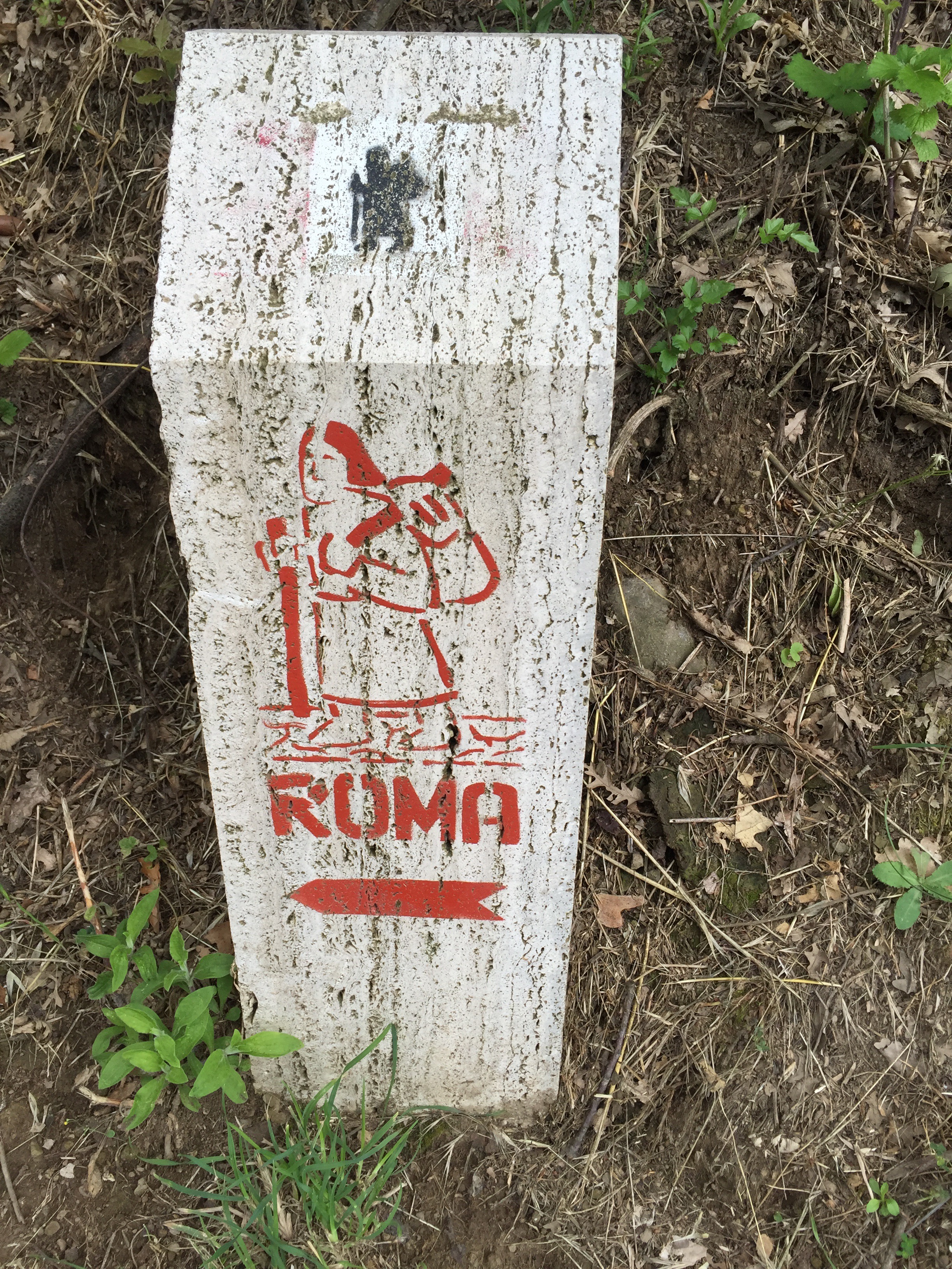 Anche i segnali della Francigena ora cambiano un po’, delle colonnine indicano solo la direzione per Roma.