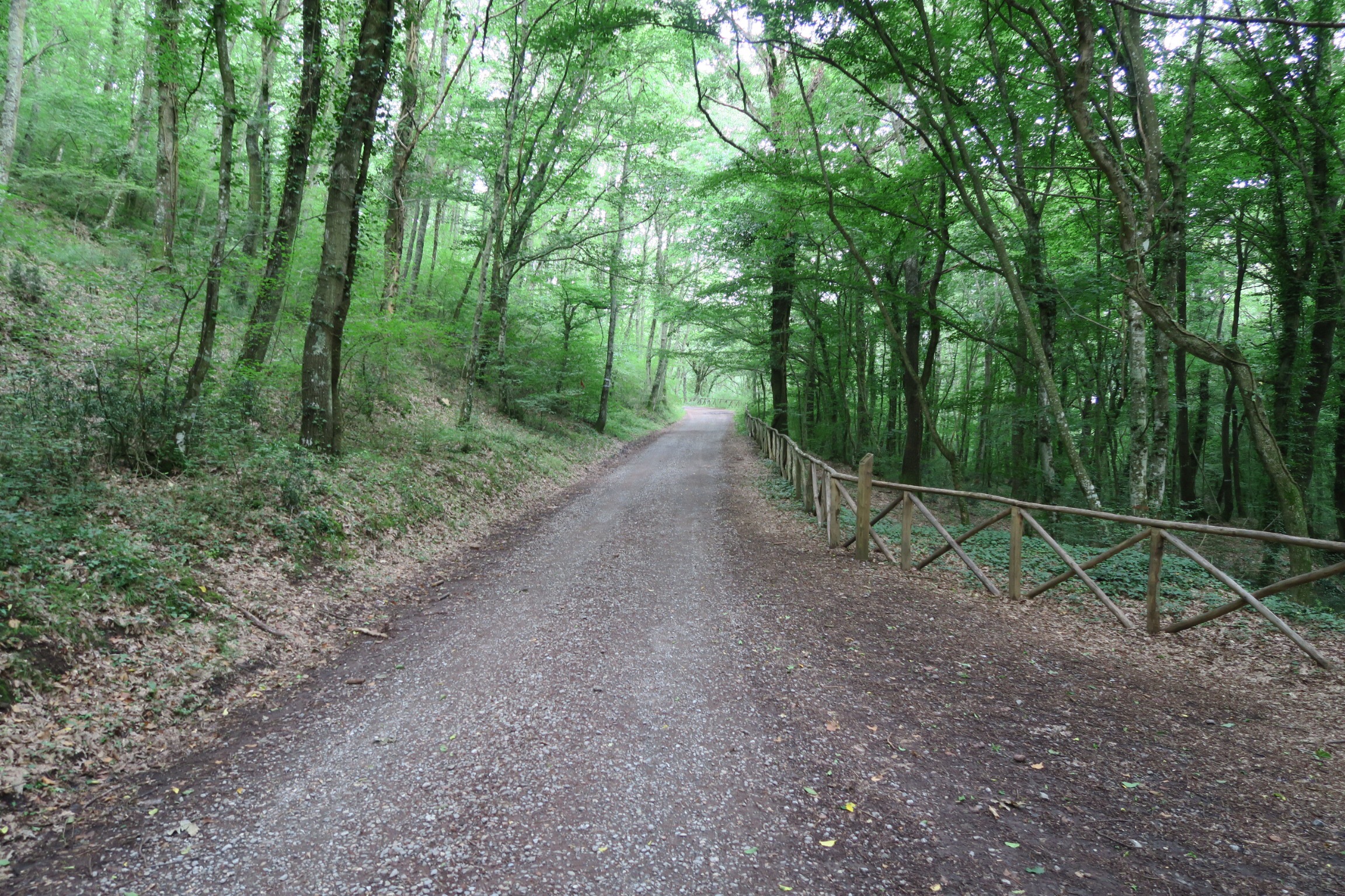 Da qui giro su un sentiero più stretto che dopo una discesa e una lunga salita diventa di ghiaia, incrocio anche un paio di cercatori di funghi che stanno tornando a casa. Più avanti trovo l’asfalto che sale ed in cima, un cartello che indica gli ultimi 100 km da Roma.