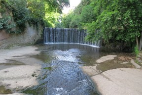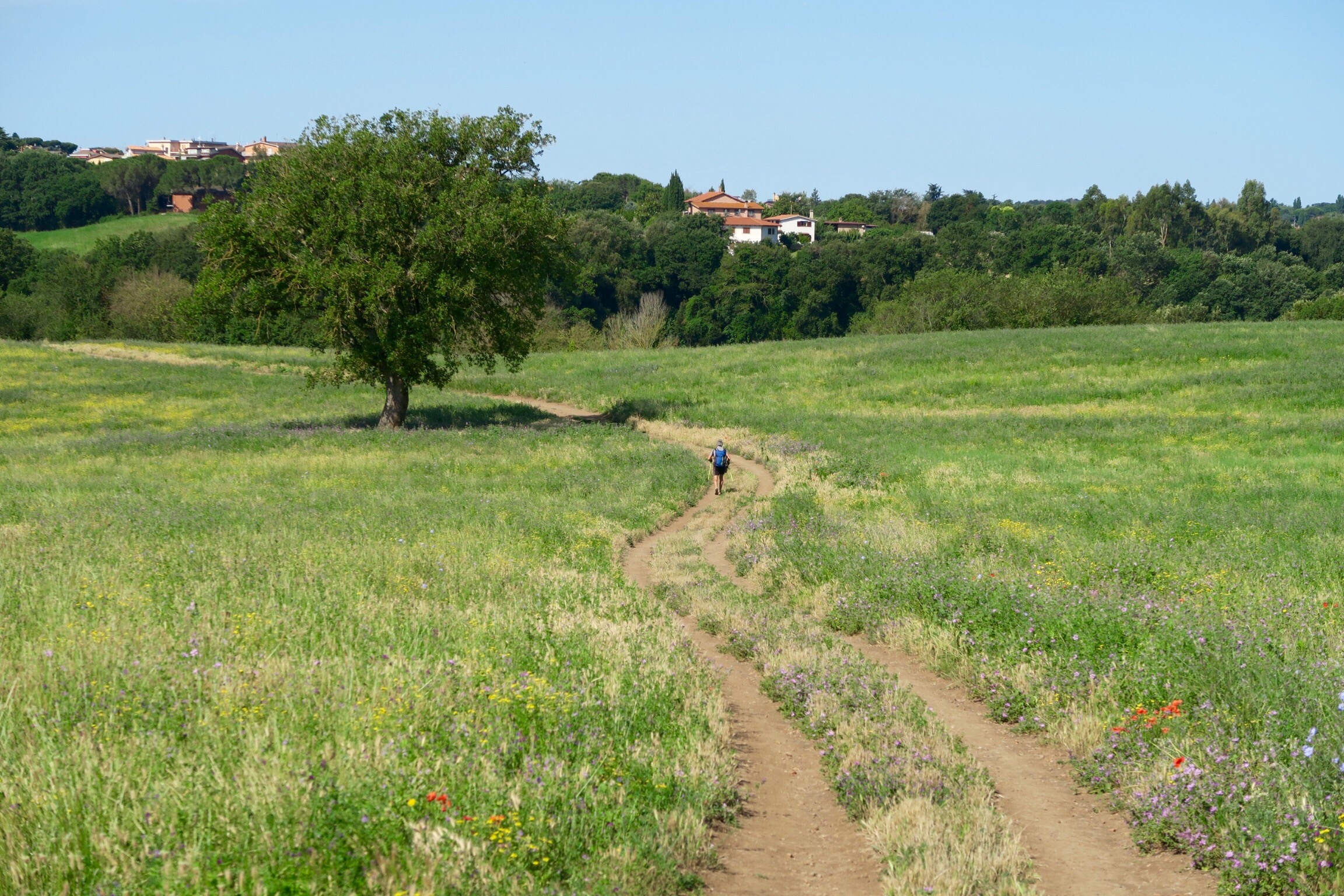 Finito lo sterrato un breve pezzo di asfalto e poi ancora un sentiero in discesa che passa davanti ad una cascata, scende attraverso una specie di parco e infine ci porta alla periferia di La Storta.