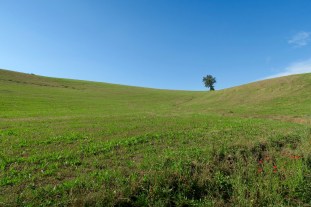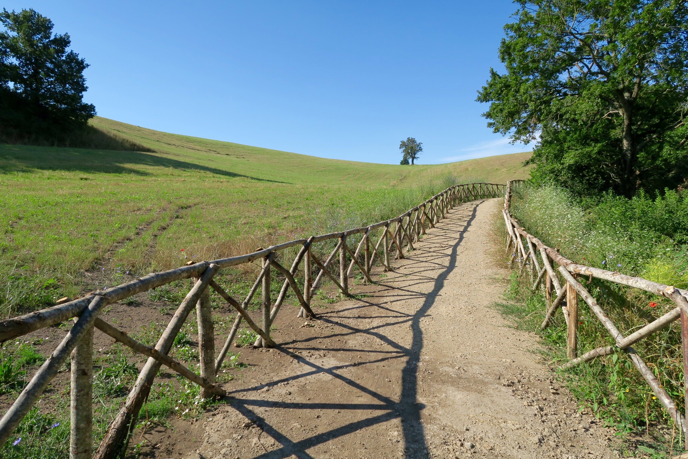 Dopo un breve tratto su un sentiero tra gli alberi il paesaggio diventa collinare e il sentiero diventa un bellissimo sterrato tra due steccati, qualche sali e scendi e qualche curva di troppo ma ne vale la pena.