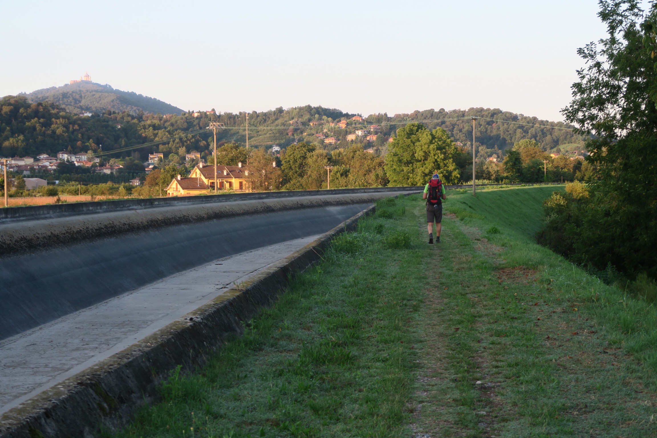 Oggi tappa che promette di essere tranquilla e semplice. Partiamo verso le 7:30 e dopo un breve tratto di paese prendiamo il sentiero sull’argine del canale Cimena, ora in secca per manutenzione.