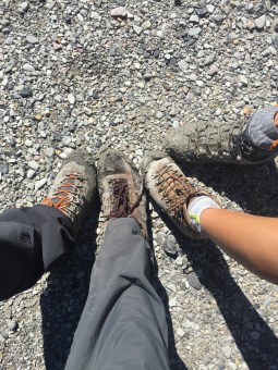 Fino a quando arriviamo di fronte al letto di un largo torrente che si immette nel lago; sebbene sia quasi in secca praticamente è fatto di sedimenti sabbiosi e la scelta di attraversarlo si rivela un po’ complicata. Ci ritroviamo quindi a saltellare tra sassi semi coperti di fango rischiando ad ogni passo di sprofondare; dopo un’ora sorpassiamo l’ostacolo prendiamo un sentiero che gira attorno ad una cava e riprendiamo sulla statale.