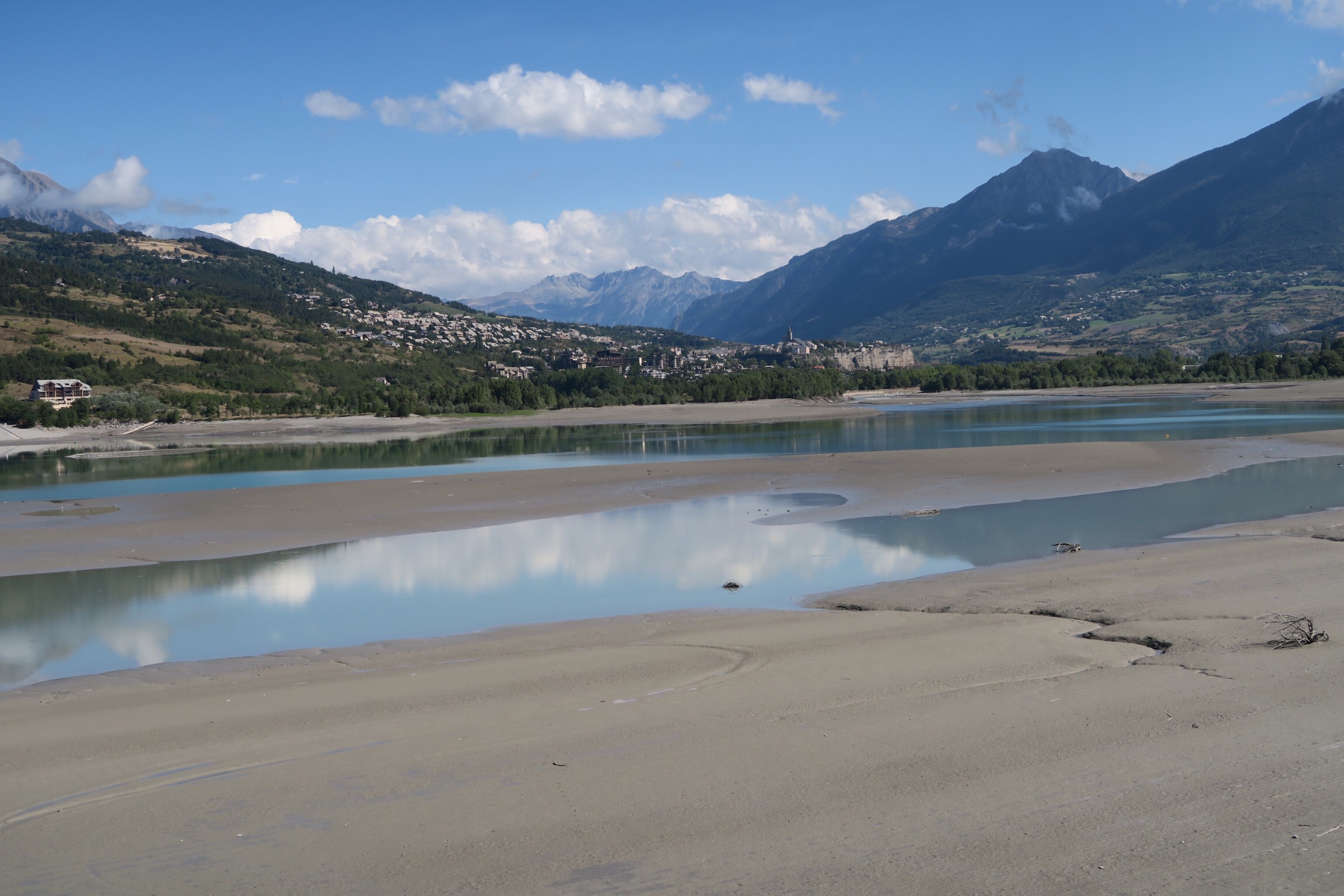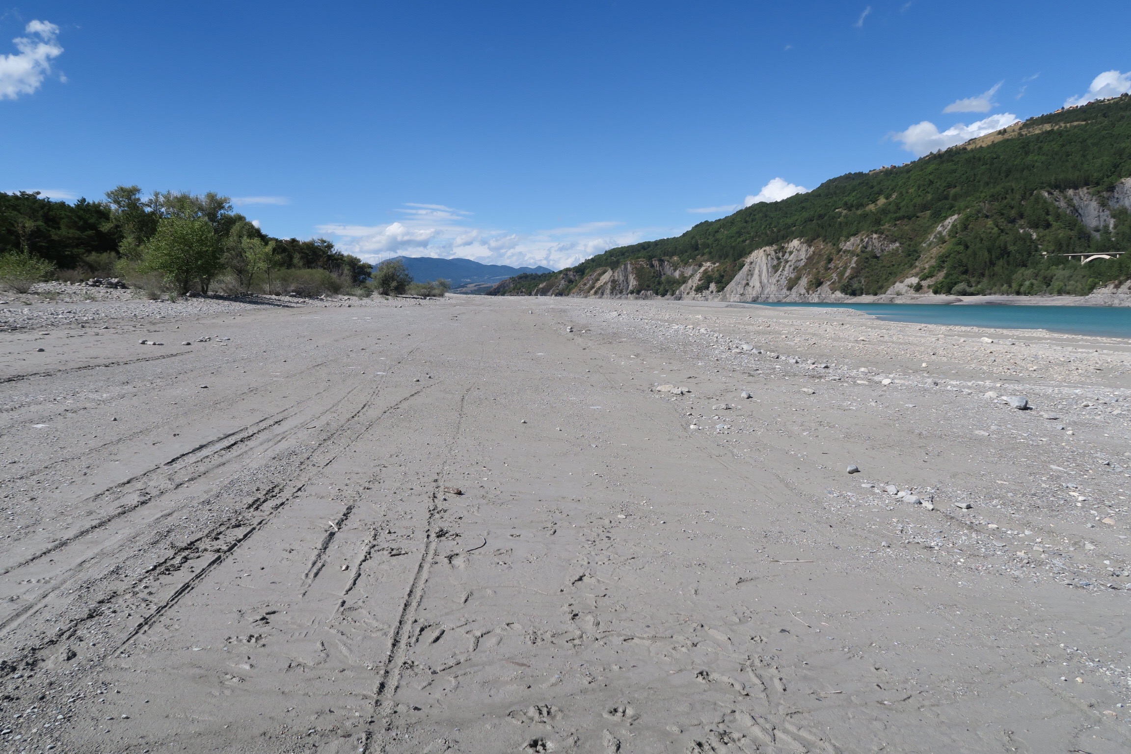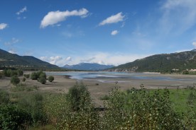 Riprendiamo sempre su strada verso il grande lago artificiale di Serre-Poncone. Passiamo dietro ad un centro commerciale e costeggiamo a distanza ancora il fiume La Durance fino a quando si immette nel lago, camminiamo su di un argine artificiale circondati da un paesaggio stupendo.