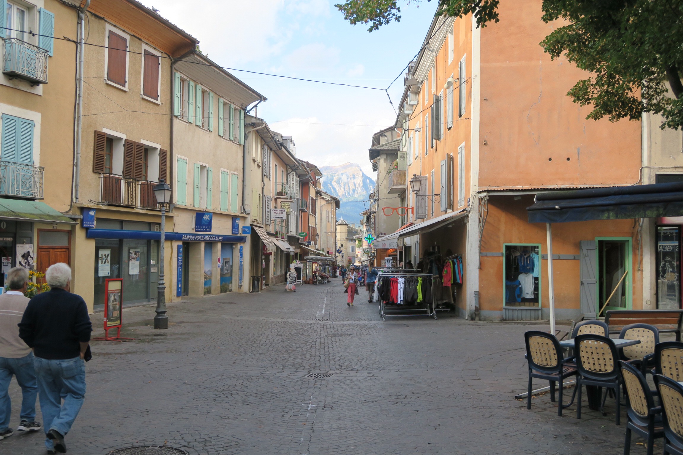 Salutiamo tutta la famiglia e ci incamminiamo attraversando il paese sulla strada che poi scende fino a costeggiare la statale N94; proseguiamo sempre sulla stessa visto che è tranquilla e arriviamo presto a Embrun, la prima vera città che attraversiamo da quando abbiamo passato il confine, con tutti i servizi, i bar, le banche e i negozi.