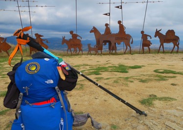 Riprendiamo su una lunga strada sterrata che più avanti comincia a salire e salire. L’ultimo tratto, anche abbastanza in pendenza, ci porta fino a 735 mt dove arriviamo all’Alto del Perdon “Donde se cruza el camino del viento con el de las estrellas” (Dove si incrocia il cammino del vento con quello delle stelle).