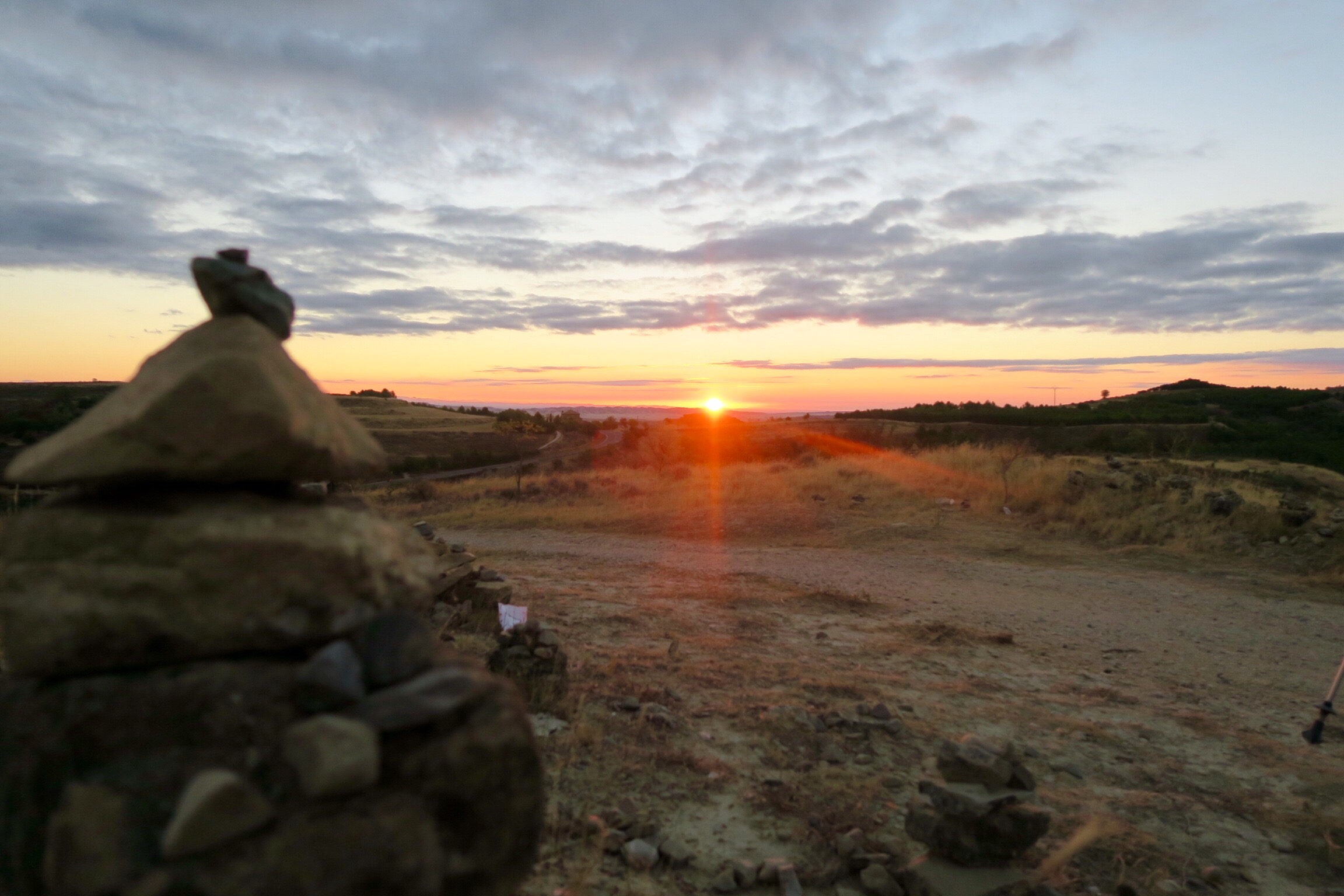 Comunque fatta colazione al volo mi incammino dietro a Grazia che è partita senza di me sapendo che tanto con il mio passo l’avrei raggiunta presto. Usciamo dalla città salendo col sole che sorge alle nostre spalle.