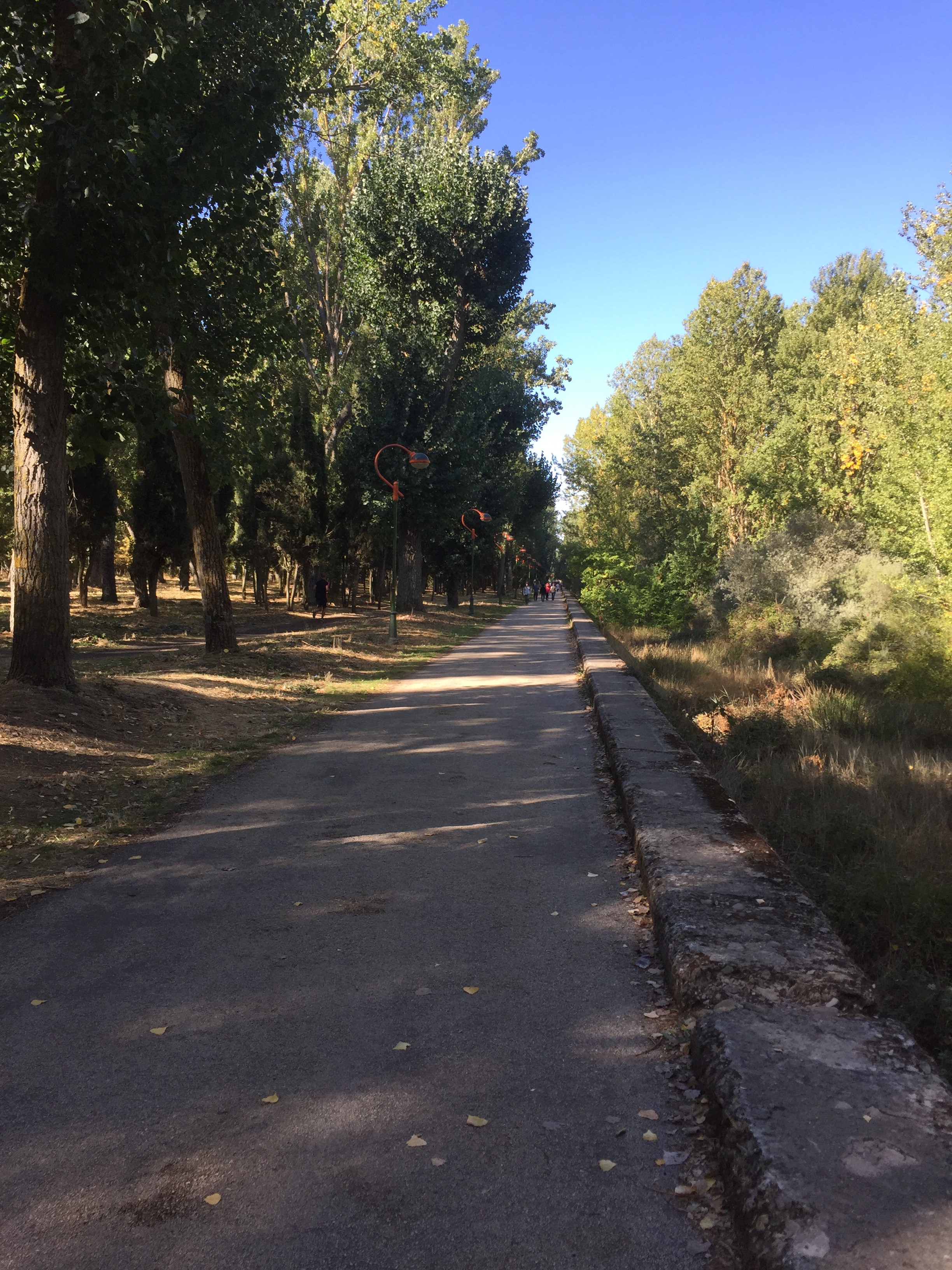 Il sentiero si immette poi in un altro grande parco che ricorda un po’ i lunghi viali del parco di Monza, dove incontriamo tantissima gente che passeggia, corre e va in bicicletta; si vede proprio che oggi è domenica. Il parco prosegue e prosegue per diversi km a fianco della città fino a quando le indicazioni ci dicono di attraversare un ponticello sul fiume per addentrarci in Burgos. L’albergue municipale è a due passi dalla cattedrale, molto grande sullo stesso stile di Roncisvalle e Pamplona.