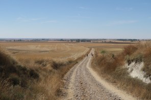 Da qui inizia la discesa che ci porta all’inizio della famigerata Meseta, cento e passa km di strada in mezzo al niente con giusto qualche piccolo paese ogni tanto. Il panorama non è male, ma alla lunga la strada diventa abbastanza monotona, difatti ad un certo punto mi metto gli auricolari per cercare di distrarmi con la musica.