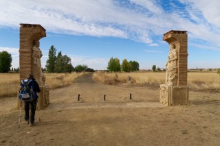 Quando, dopo una mezz’ora abbondante, riprendiamo a camminare, torniamo a costeggiare la statale sempre su uno sterrato che ad un certo punto sale e ci mostra in lontananza la città di Sahagún, che per quanto ci sembri vicina ci costringerà a camminare ancora per 8 km circa prima di lasciarci entrare. La città, ad essere sinceri, sembrava meglio da lontano; entriamo passando vicino alla stazione ferroviaria e poi la attraversiamo passando dal quello che sembrerebbe il centro. Ci fermiamo per pranzare all’ultimo bar che c’è prima di uscire dalla città dove il titolare ha un grande rispetto per i pellegrini e per il cammino e ci dice quanto secondo lui è importante e profondo percorrere tutti questi km fino a Santiago.