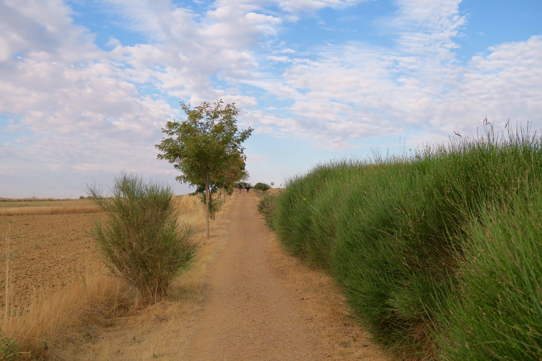 Sveglia alle 6:00 come sempre e caffè al bar dell’albergue, la colazione un po’ più sostanziosa la faremo più tardi magari. Partiamo prendendo il sentiero che costeggia la strada che porta in centro e attraversando Terradillos siamo presto su un altro sterrato lungo, ma questa volta almeno ha qualche curva. Dopo qualche km col vento freddo che ci costringe a tirare fuori giacche e giacchette, arriviamo a San Nicolás dove ci fermiamo per una colazione vera e propria con brioche e caffè.
