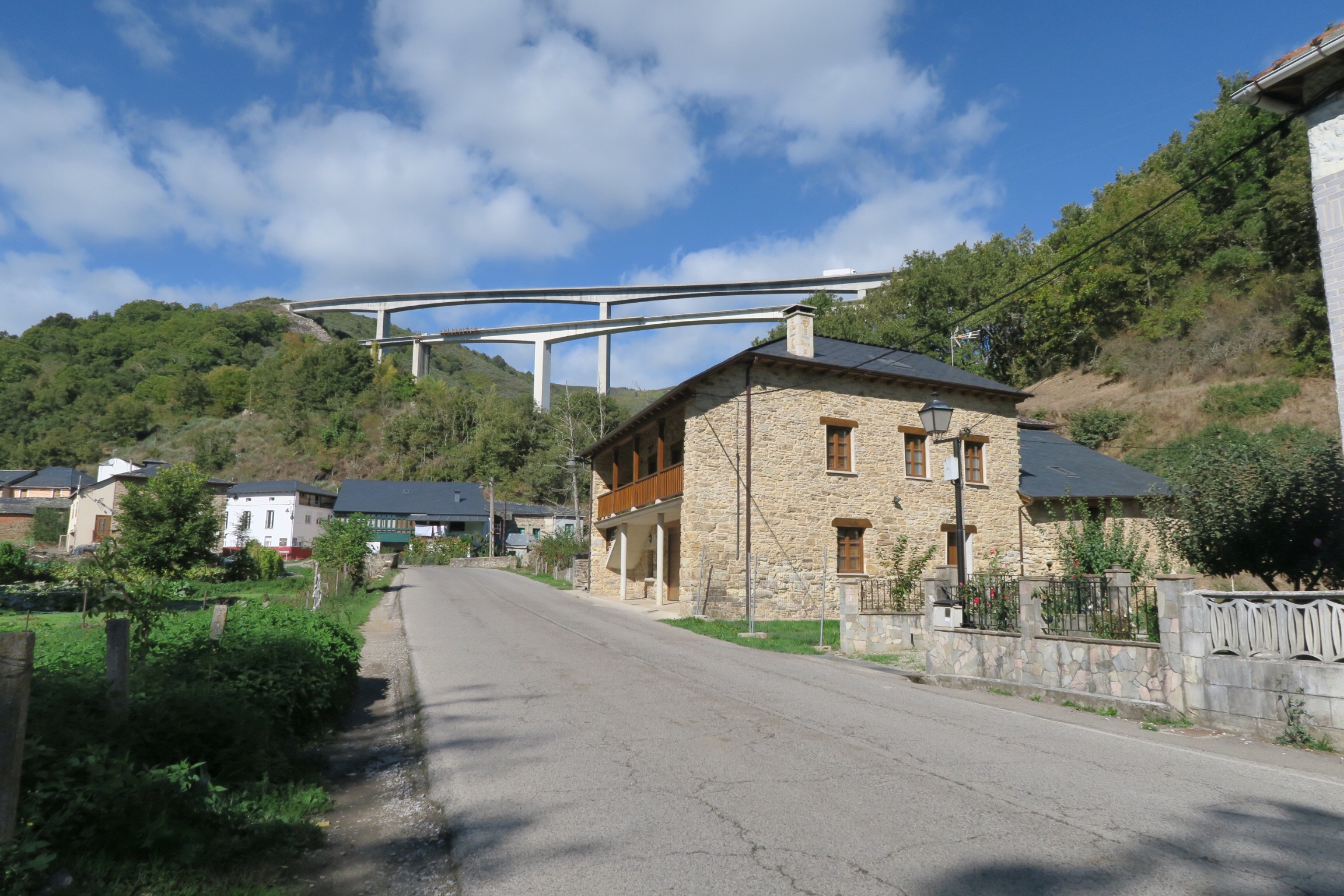 La prima parte oggi è tutta su asfalto, per lo più sul lato di una strada che costeggia, passa sopra o sotto l’autostrada percorrendo tutta una vallata e a tratti costeggia il Rio Valcarce.