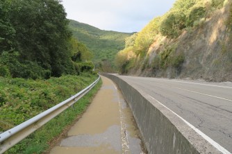 Percorriamo altri km sempre a lato della strada quando finalmente deviamo allontanandoci e salendo per paesini che diventano mano a mano tipicamente di montagna. Ci fermiamo ad un bar per un panino e riprendiamo subito dopo, la tappa è lunga ancora.