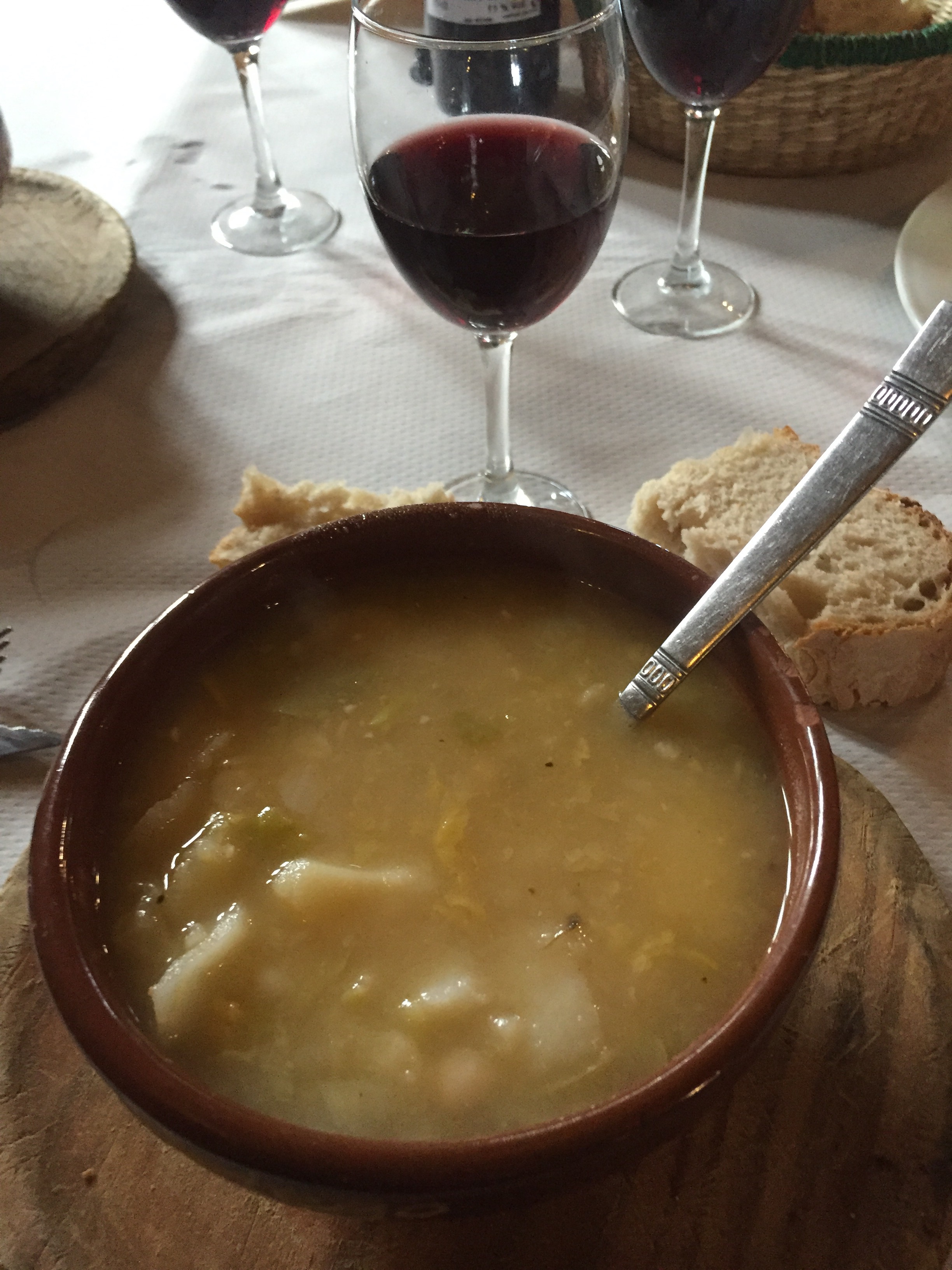 L’albergue comunale non è male, siamo praticamente in mansarda e non essendo abbastanza alta niente letti a castello, quindi anche meno posti, meno rumore e meno odori. Al piano terra c’è anche la cucina ma è sprovvista di pentole, il che la rende inutile. Andiamo quindi a mangiare al ristorante dove, con 10 euro, il menù del pellegrino prevede zuppa, uova, salsiccia e patatine e per dolce del formaggio tipo ricotta con il miele, almeno questo è quello che ho scelto io.