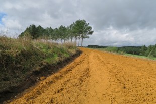 Con la luce della torcia ci incamminiamo sulla strada che, salendo, esce dal paese; per buona parte della mattina passiamo tra sterrato e asfalto tra fattorie e niente di più, salendo e scendendo continuamente. Il problema maggiore non è la fatica ma, siccome appunto passiamo continuamente tra fattorie, è riuscire ad evitare le numerose cacche lasciate dagli animali.