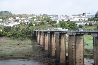 Oggi,come ieri, andiamo molto spediti; io e Grazia oramai siamo più che allenati e Chiara sarà pure piccolina ma cammina veloce anche lei. A parte una breve pausa in un bar ci facciamo una ventina di km di fila fino a Portomarin. Attraversiamo il lungo ponte che porta alla città, sotto il quale si può vedere ancora il ponte antico costruito dall’Impero Romano e sugli argini del fiume le vecchie rovine della città che, dopo la costruzione della diga nel 1962, venne spostata sul vicino monte .