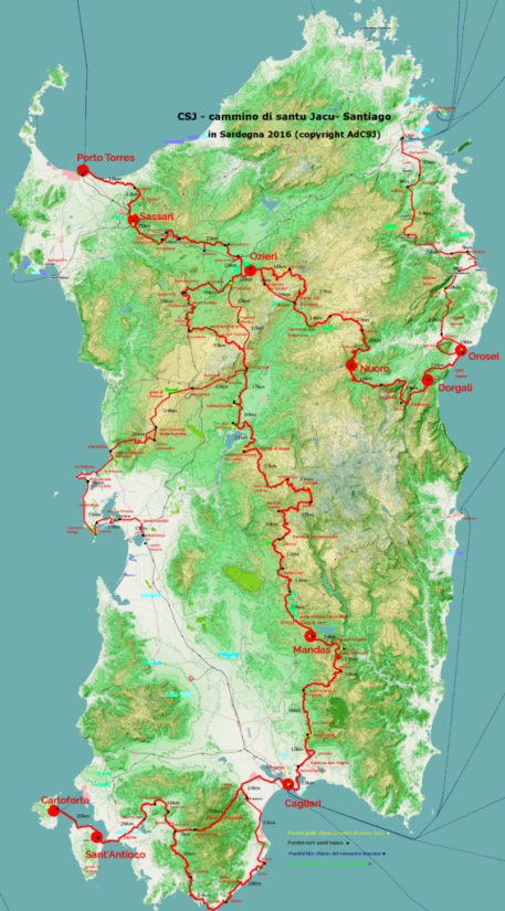 Un cammino che propone 4 varianti: l’asse centrale da Porto Torres a Cagliari, il Sulcis più le isole, la variante est da Orosei a Olbia e in fine la ovest da Noragugume a Oristano. Io ho deciso per l’asse centrale da Nord fino a Sud.