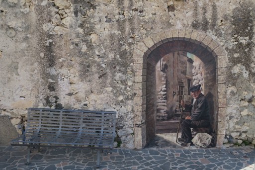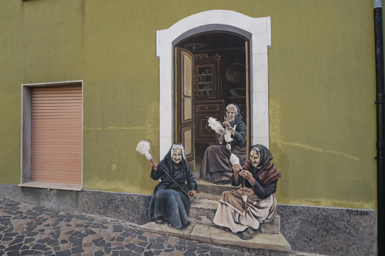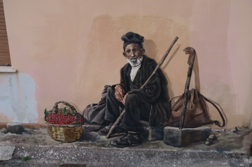 Mi incammino sulla strada che essendo domenica mattina è praticamente deserta. Arrivo presto a Borutta, volendo potevo evitarla tirando dritto per Torralba risparmiando qualche km ma dopotutto son qui per visitare la Sardegna non per tirare dritto fino al sud. Il paese comunque ha un suo perché, con dei bellissimi murales che rappresentano momenti di vita paesana di una volta.
