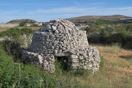 Seguo la strada che sale e arriva su un altopiano disseminato da recinti di muri a secco di pietre calcaree e all’interno di questi anche qualche furraghes, antichi forni per la produzione della calce.