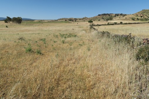 Quindi è deciso! Prendo a sinistra, attraverso la strada per poi riprendere su una che ad un certo punto mi fa camminare in mezzo ad un campo su un sentiero che praticamente non c’è, seguendo solo i muretti di delimitazione e attraversando un paio di cancelli pastorali.