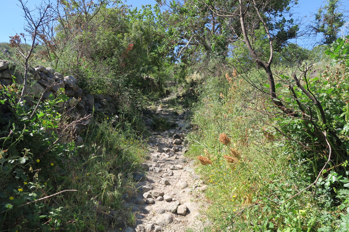 Torno in fine su aslfalto, dopo circa 3 km passo tra una fabbrica per la lavorazione del marmo o qualcosa del genere ed un poligono di tiro, fino a quando scendendo in un sentiero sulla destra arrivo all’inizio della brutta salita che mi porta all’inizio di Sedilo, un sentiero stretto che sembrerebbe più il letto di un ruscello, ripido è fatto da rocce sconnesse. Arrivo in cima col fiato corto è un gran bisogno di acqua fresca.