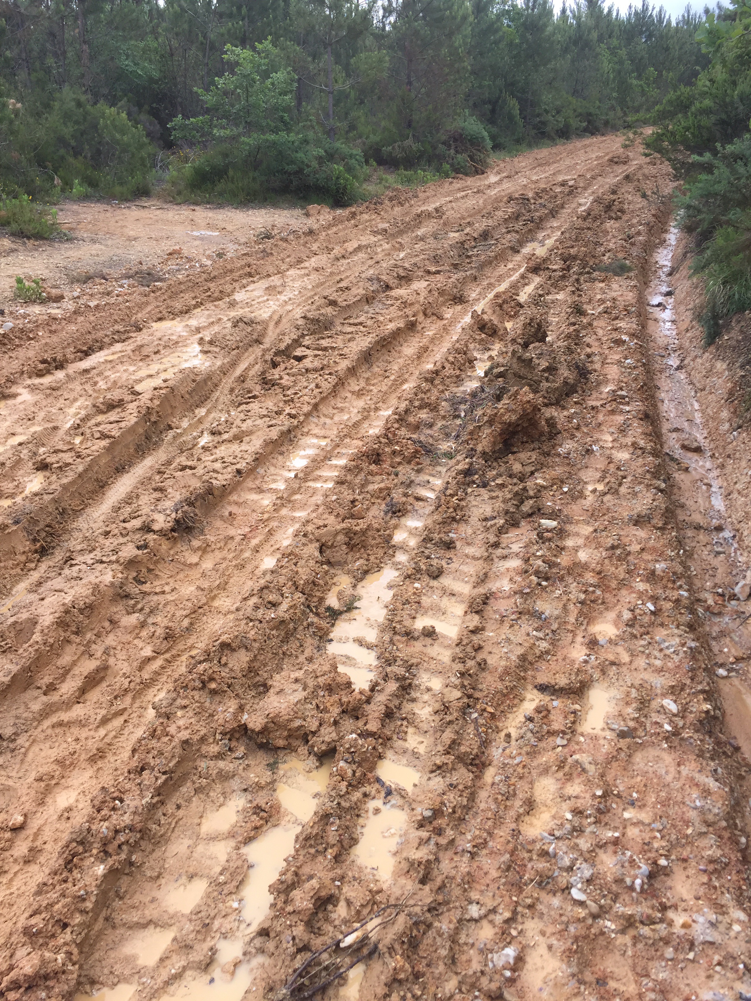 Quando la strada incomincia a scendere diventa sterrata e in fondo gira su una pista ciclo-pedonale che continua per qualche km costeggiando la strada interrotta solo da una piccola zona industriale.